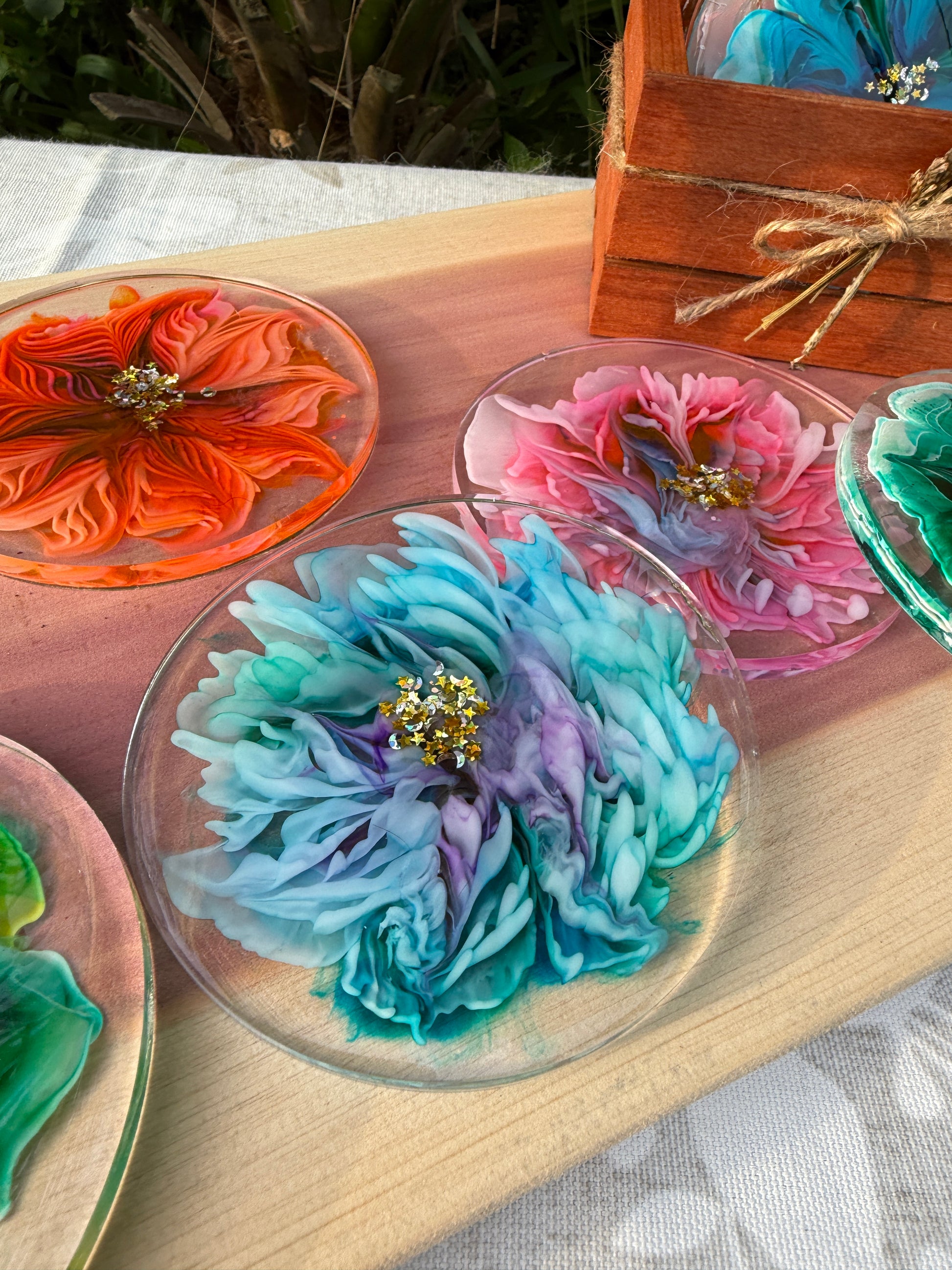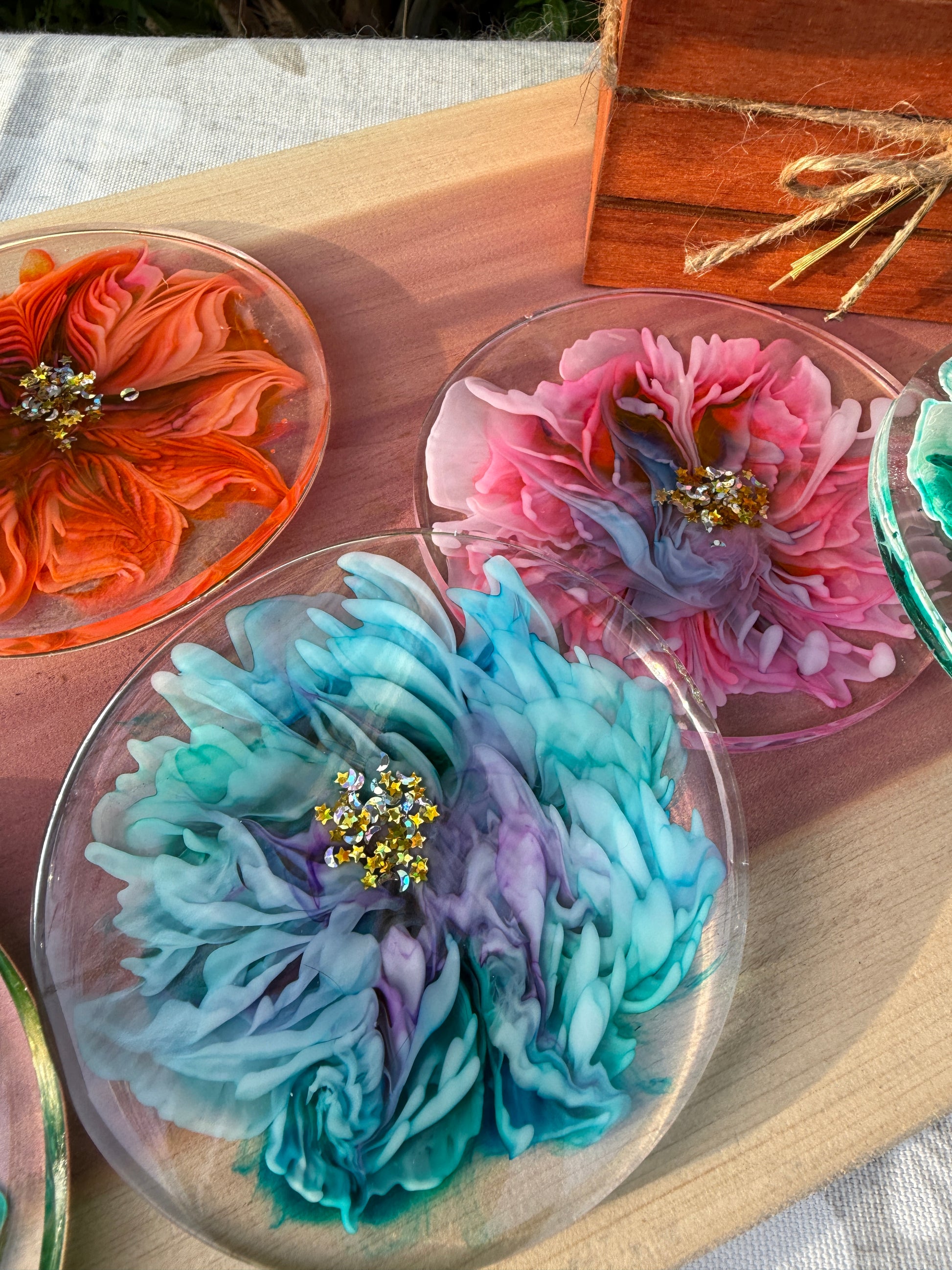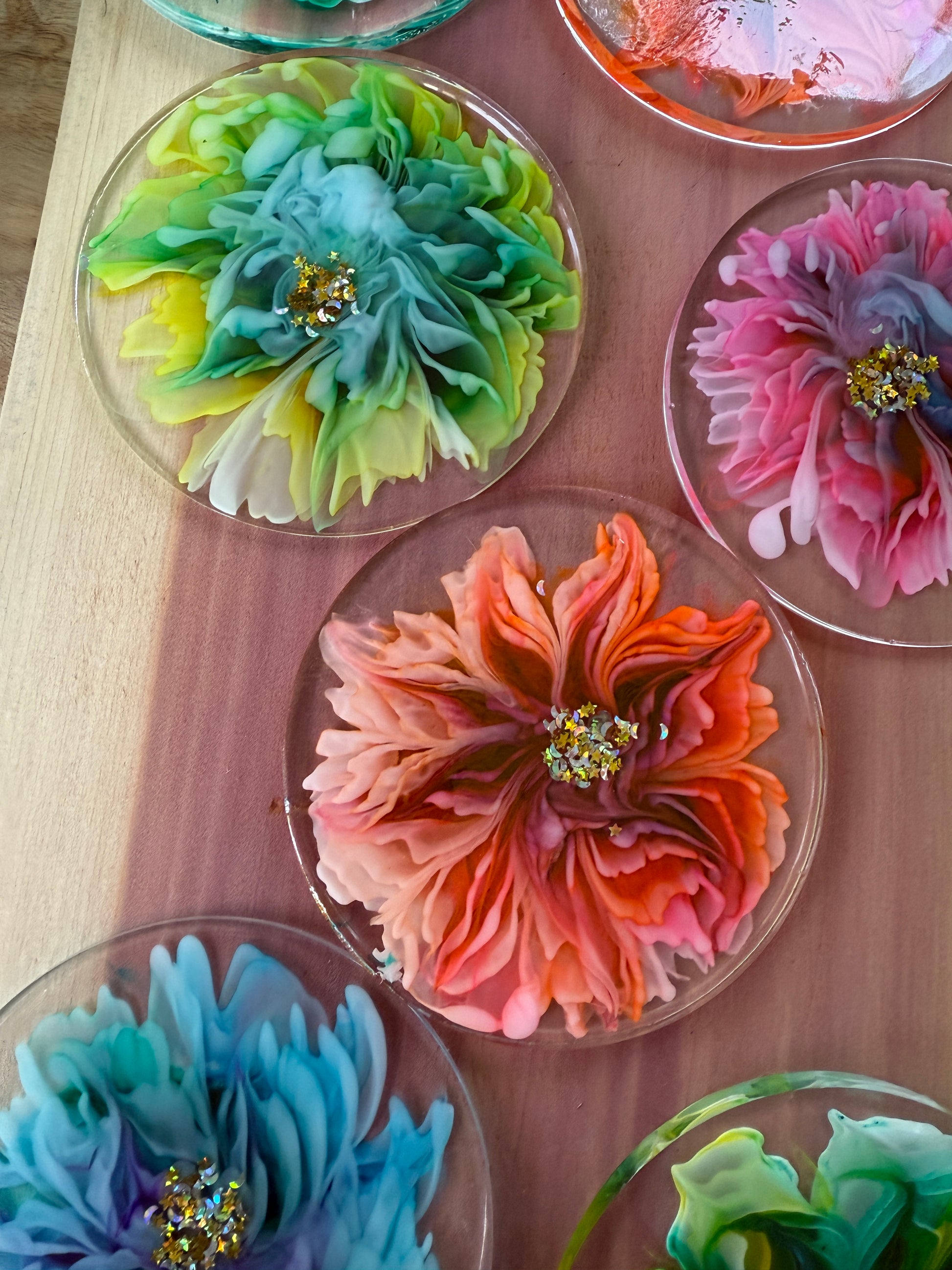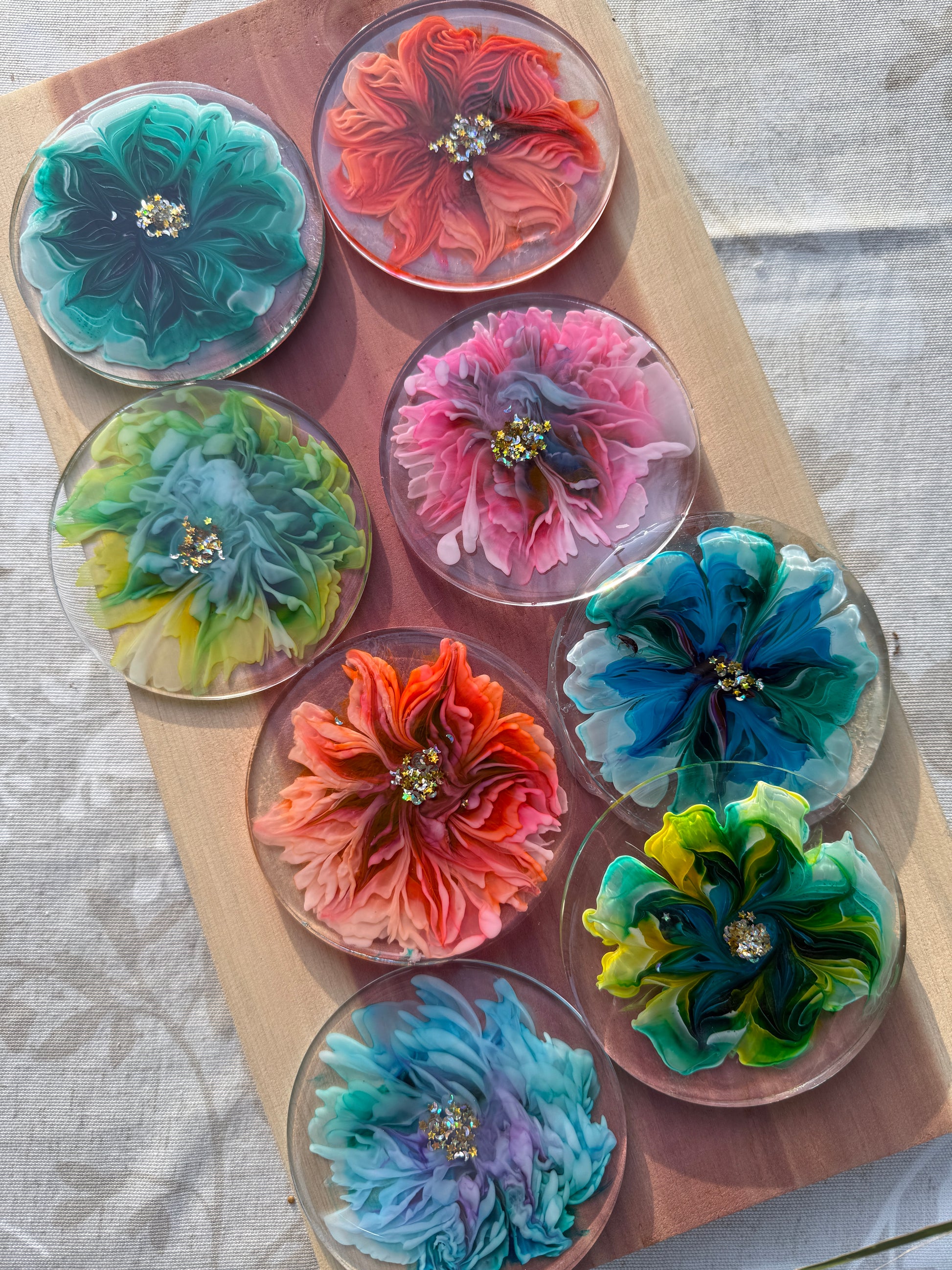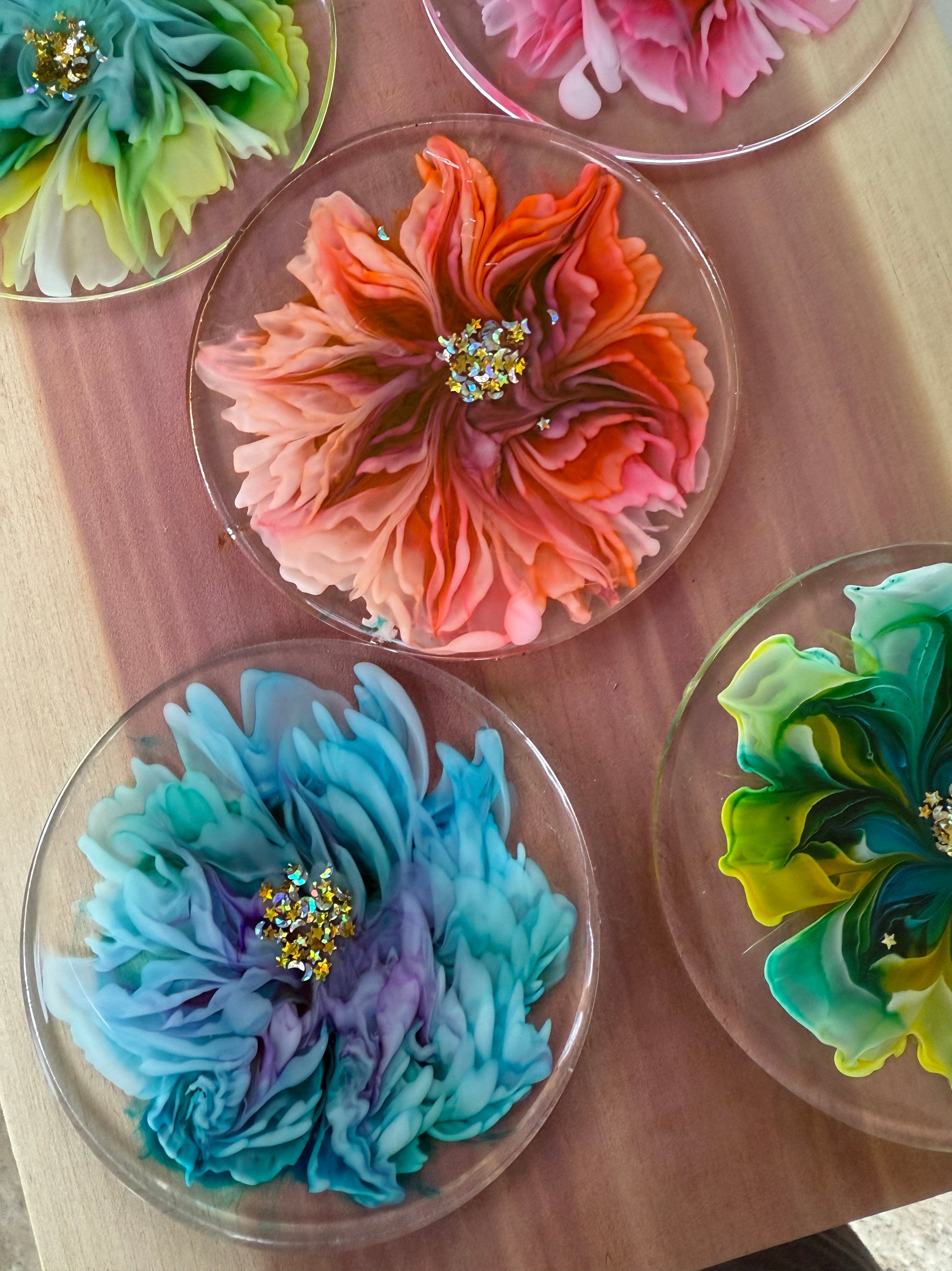 Create your own stunning set of blooming coasters using epoxy and alcohol ink!