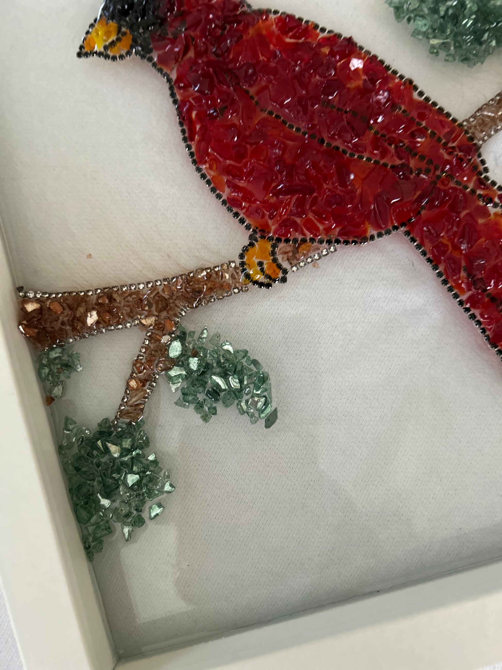 Capture the beauty of winter with our Cardinal Crushed Glass Kit! This kit comes complete with everything you need to create a sparkling, festive piece, featuring a vibrant cardinal perched gracefully on a branch. The cardinal outline is elegantly accented with rhinestones and filled with glistening crushed glass, making it a stunning addition to any space. The kit includes an 8x10 frame, crushed glass, rhinestones, epoxy, mixing cup, tools, and a tablecloth for easy cleanup. Perfect for beginners or seasoned crafters alike, this project is easy to complete with our step-by-step directions.