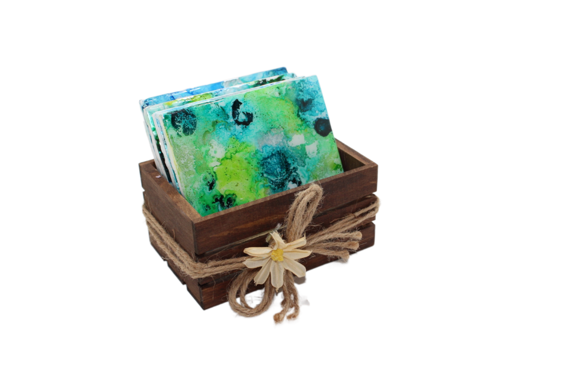 Dive into the world of alcohol inks and epoxy resin art with this fun and creative kit. Get your Coaster & Mini Crate Holder Craft Kit today and create beautiful, functional art pieces!