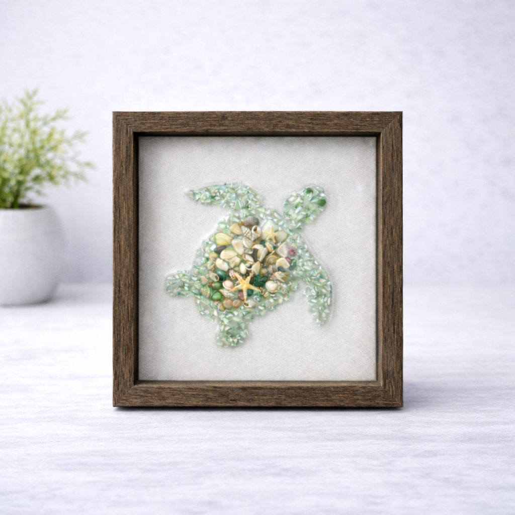 Embark on a creative journey under the sea with our Turtle Tides Glass Art Kit. This delightful craft kit lets you design a stunning sea turtle scene using vibrant crushed glass, all set in an 8x8 prepped frame. Perfect for ocean lovers and craft enthusiasts, this kit provides everything you need to bring the beauty of marine life into your home.