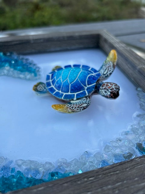 Bring the serene beauty of the ocean into your home with this all-inclusive crafting kit! The Turtle's Tide Crushed Glass Kit comes complete with everything you need, including a beautifully detailed resin turtle to add stunning dimension and depth to your artwork.